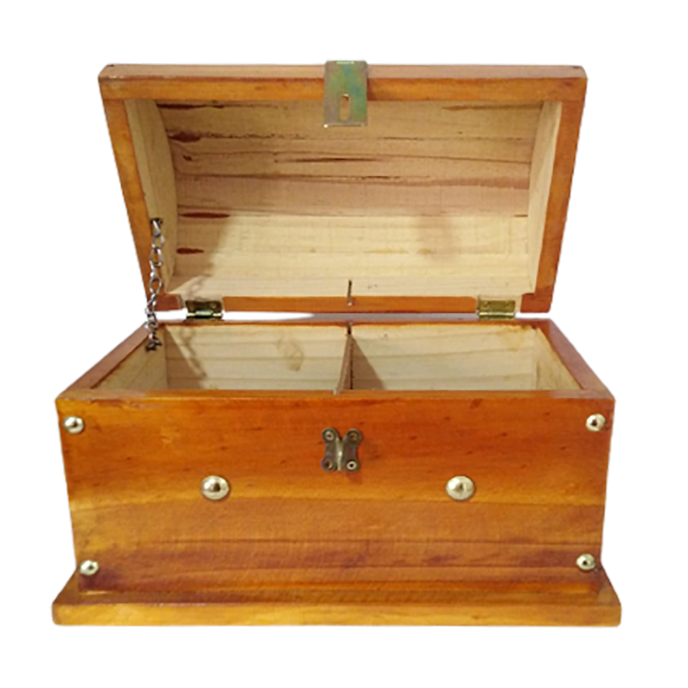 Hermoso baĂşl de madera Pino pulido, amplio y decorativo en color caoba