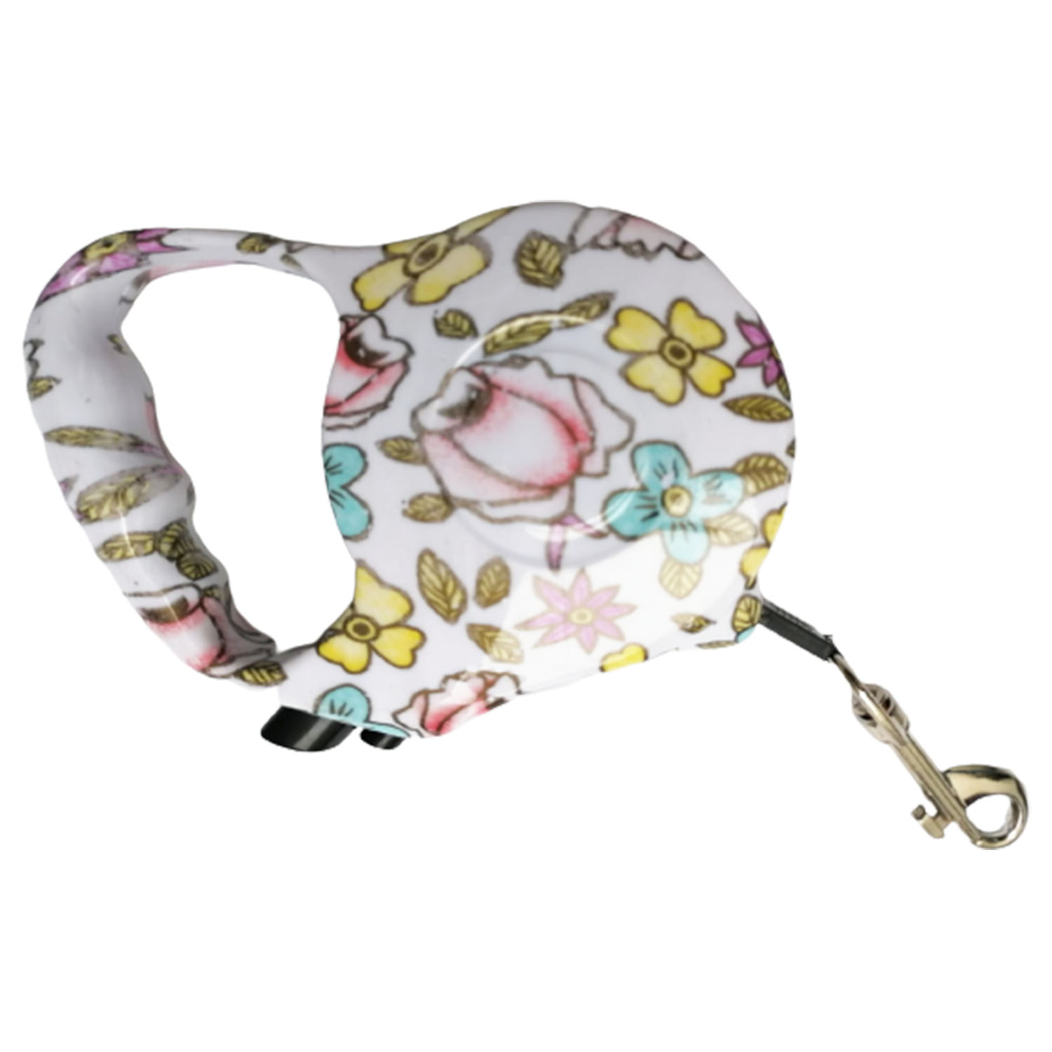 Correa Retráctil Para Mascotas 5mt flores Blanco