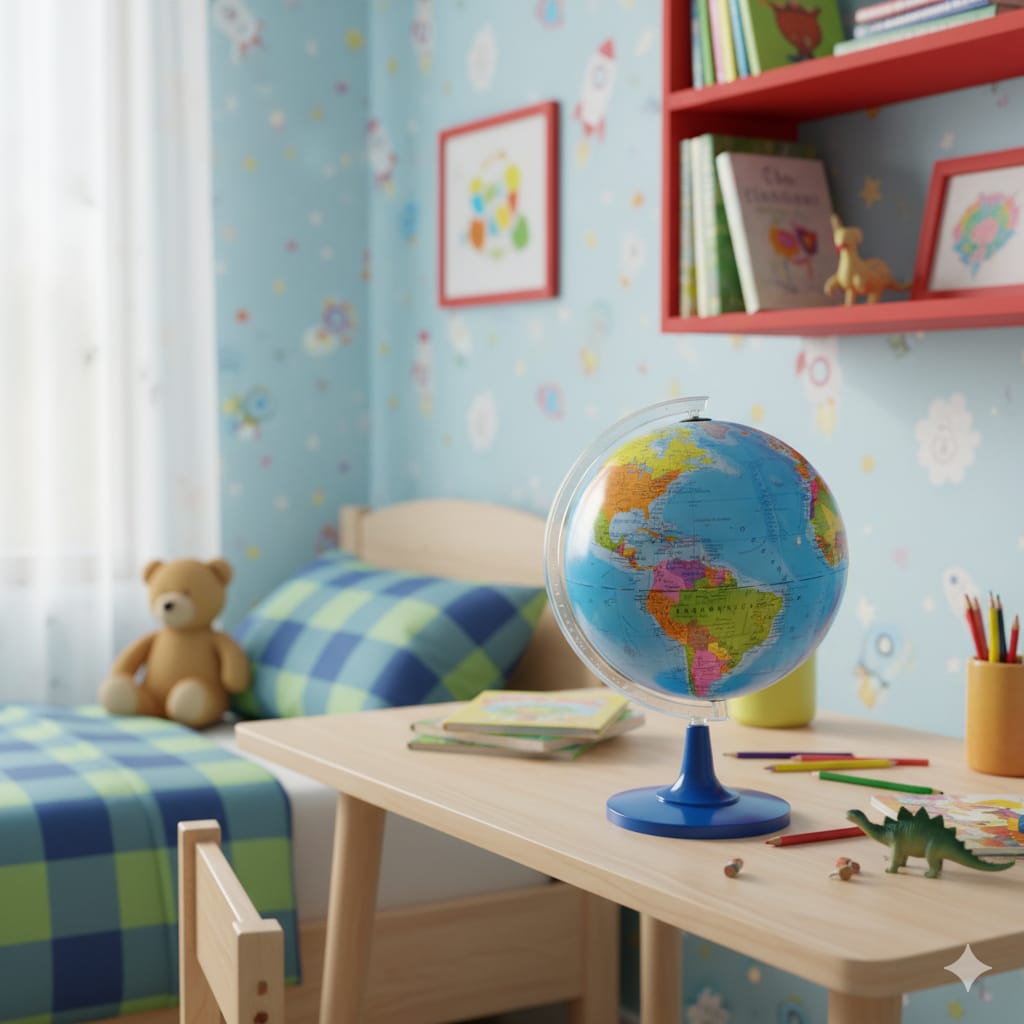 Su sistema giratorio de 360° facilita la visualización desde cualquier ángulo, ideal para aprender geografía de manera interactiva. La base estable y resistente de PVC garantiza durabilidad, firmeza y un diseño elegante, perfecto para colocar en escritorios, repisas, salas de estudio u oficinas.