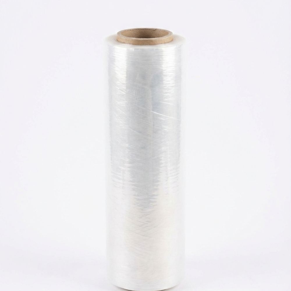 Film plástico transparente de 3.20 kg, resistente y flexible, ideal para embalaje, protección de carga y logística. Medidas: 45 cm de alto, 15 cm de ancho.
