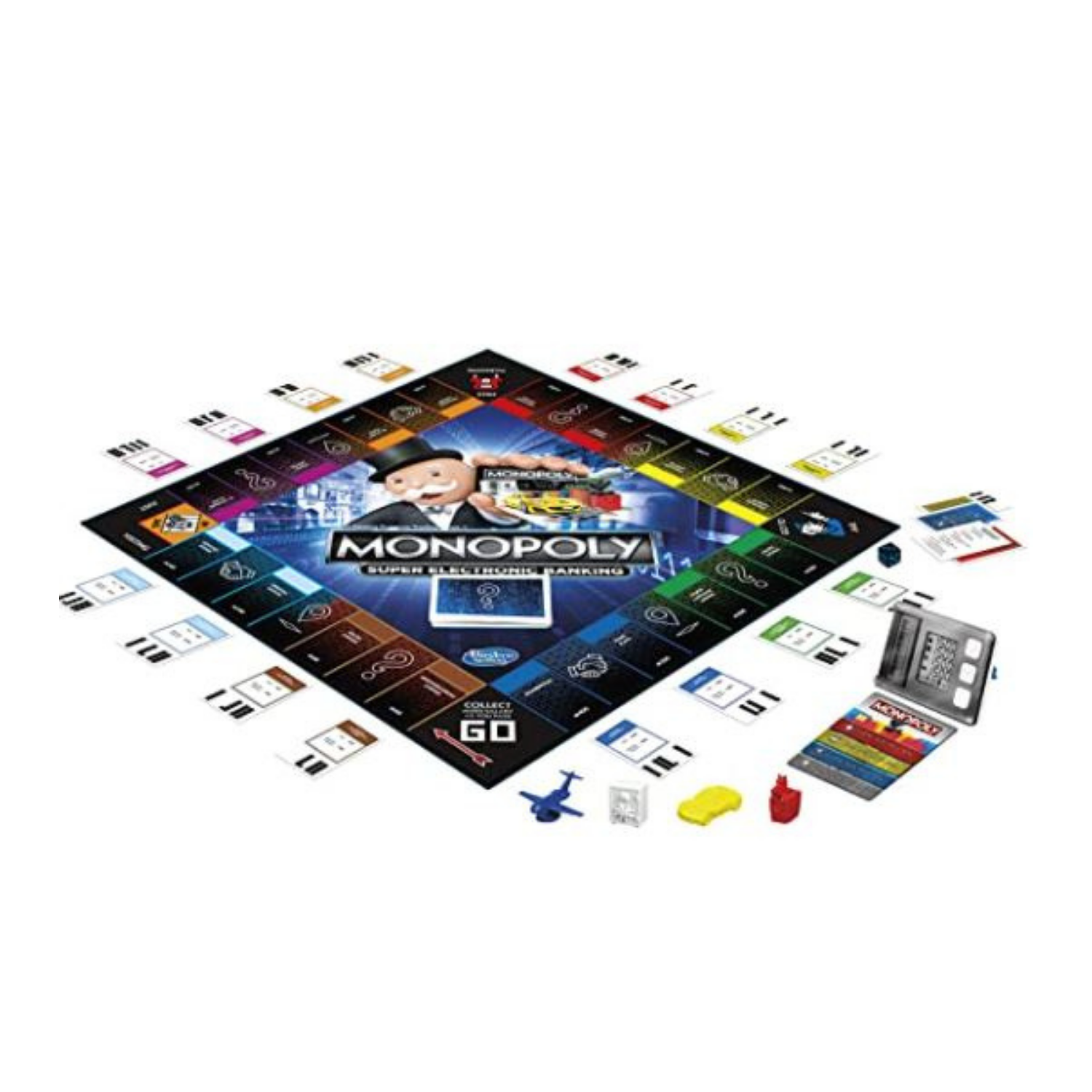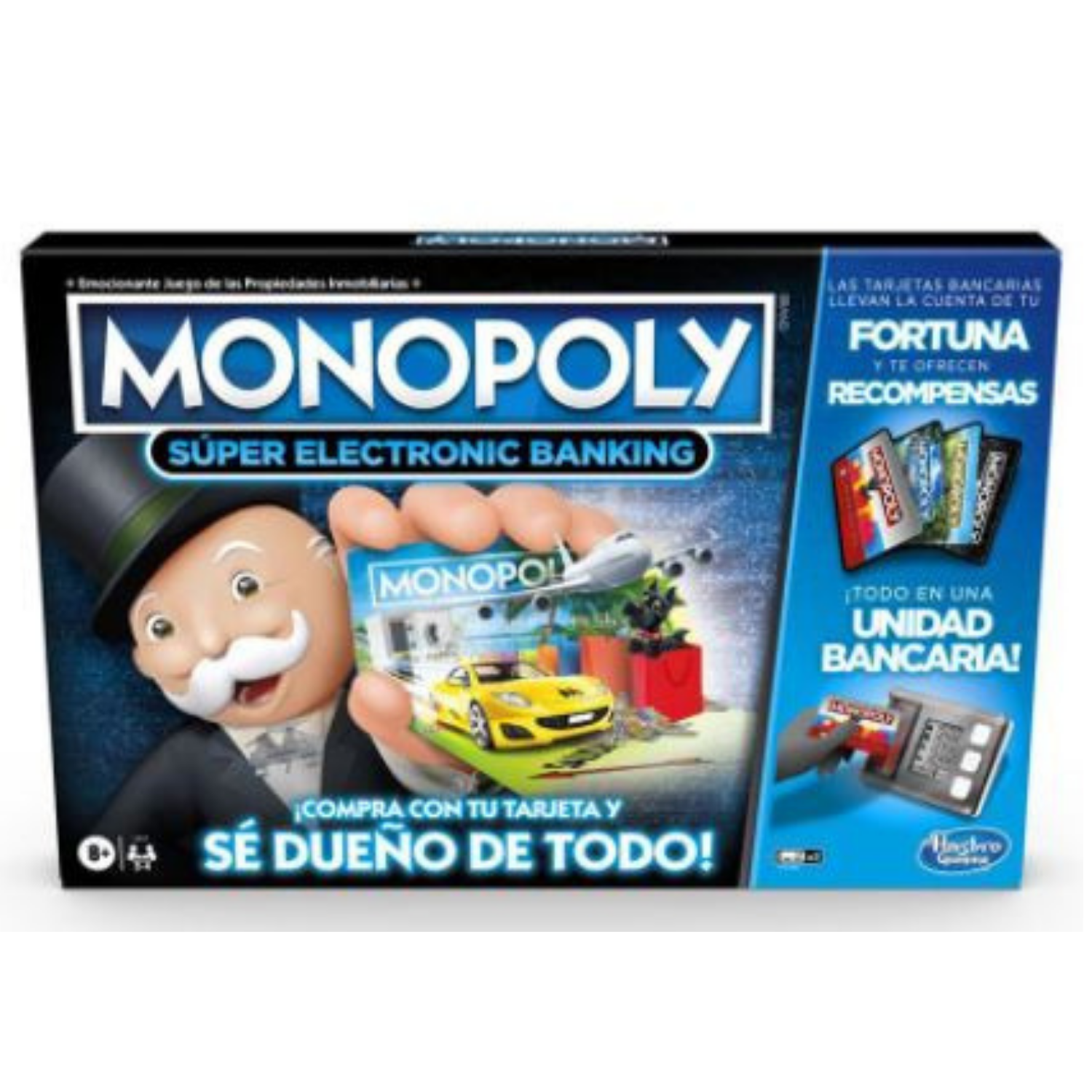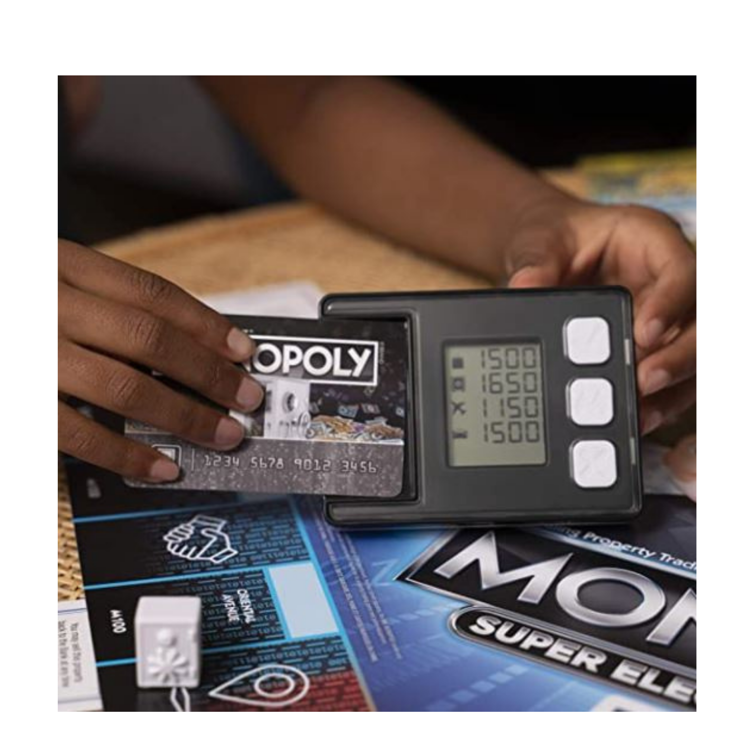Unidad de banco: el juego de mesa Monopoly Super Electronic Banking cuenta con una unidad de banco todo en uno con tecnología de grifo que hace que el juego sea más rápido que el clásico juego Monopoly
