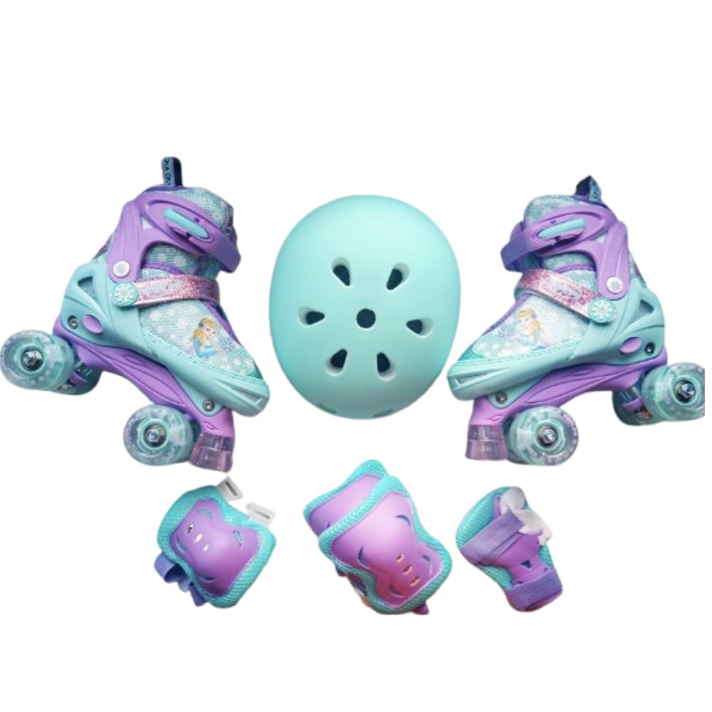 - Incluye casco y protección en codos, rodillas y muñequeras