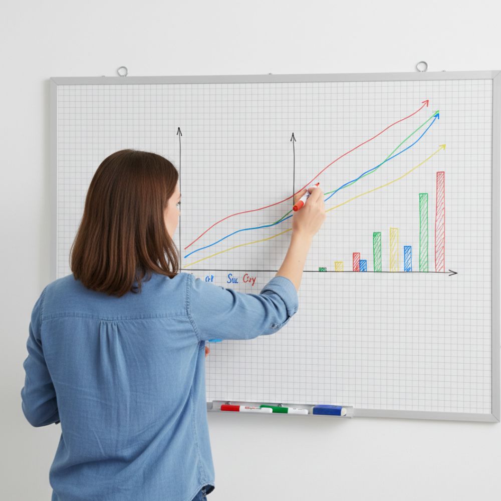 La Pizarra Cuadriculada 80x60cm es una herramienta perfecta para clases, oficinas, capacitaciones y organización en el hogar. Su superficie blanca acrílica incluye un sutil cuadrículado que facilita escribir recto, hacer gráficos, operaciones matemáticas, esquemas y presentaciones más ordenadas.