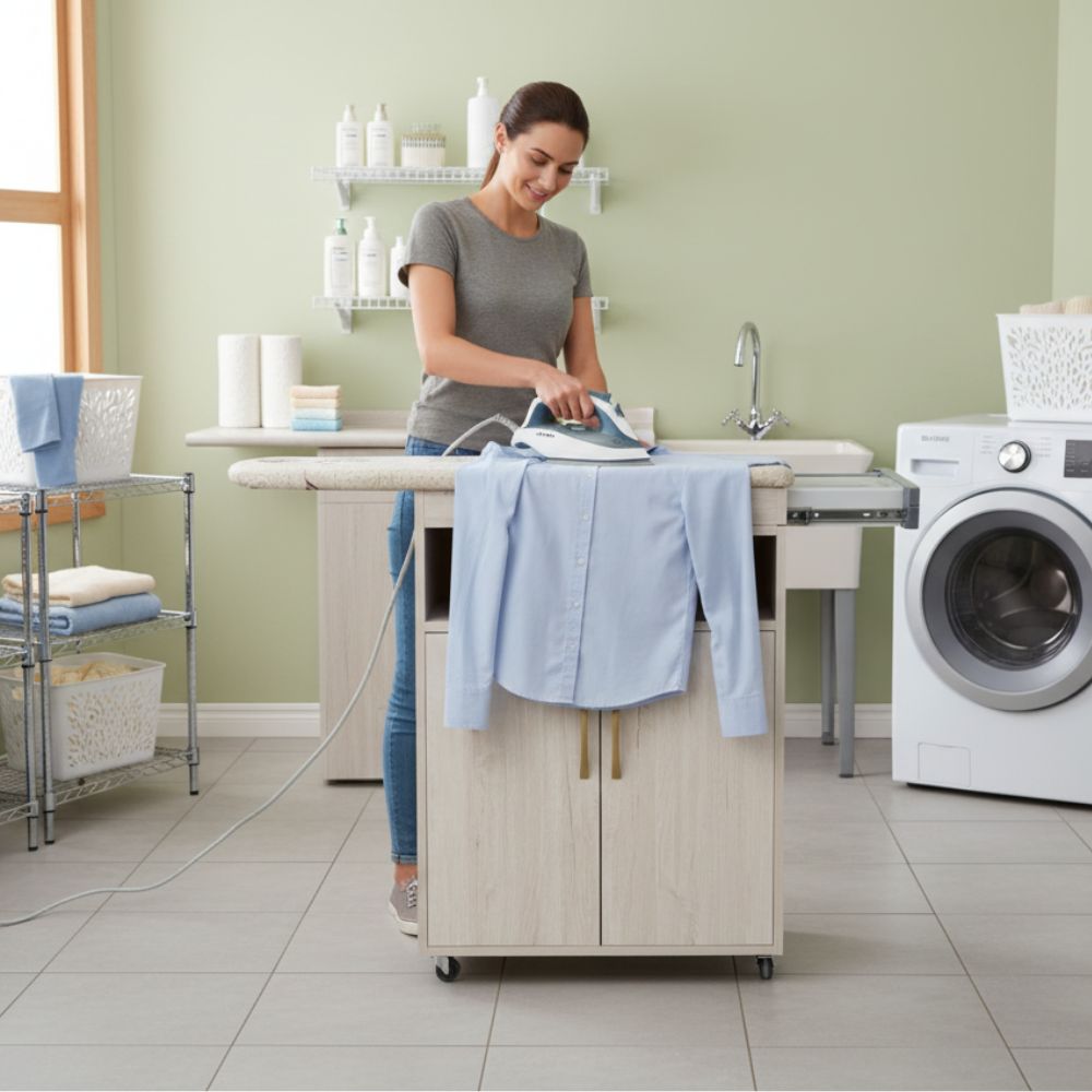 Optimiza tus tareas de planchado con el mueble planchador arena con ruedas, un diseño funcional y elegante que combina practicidad y estilo.