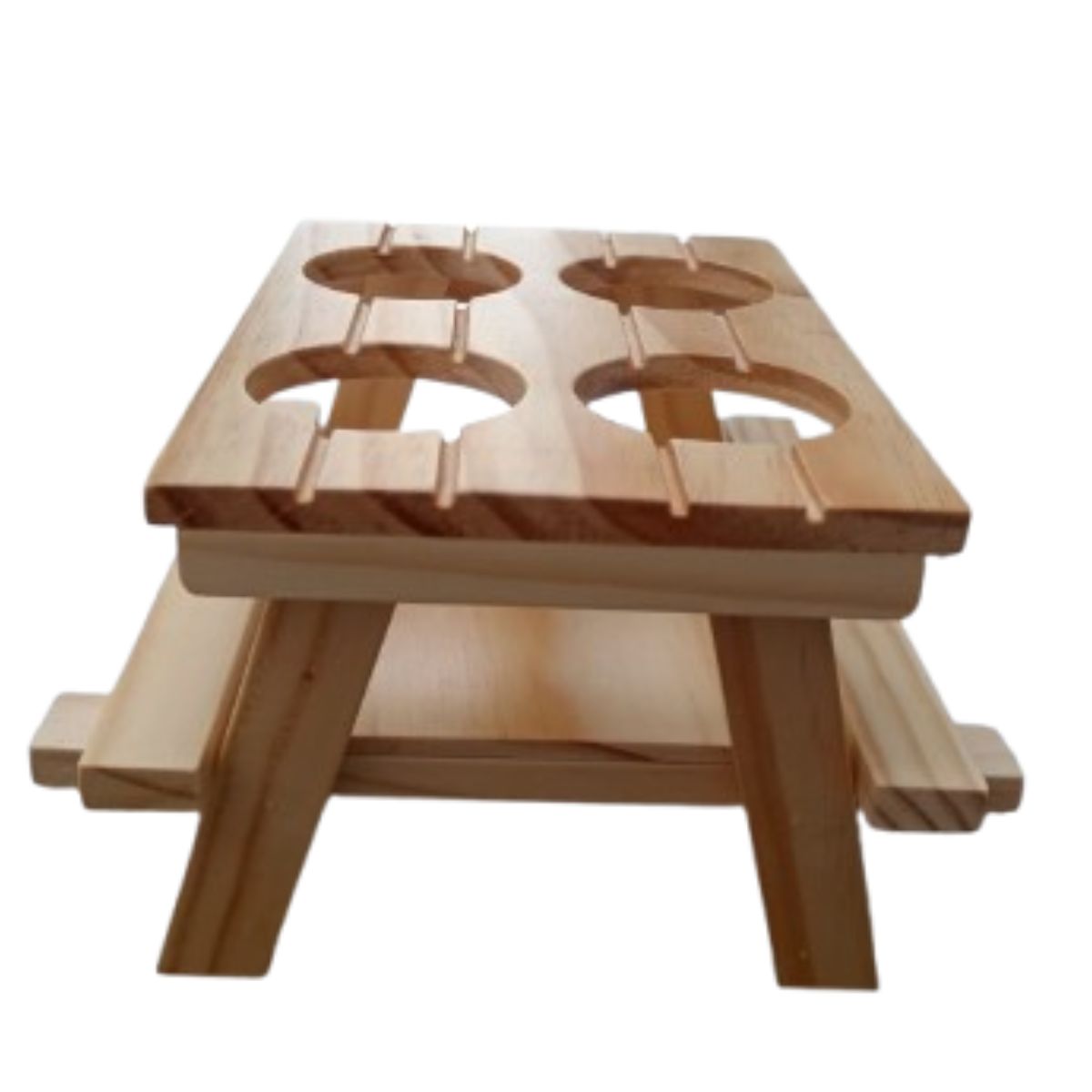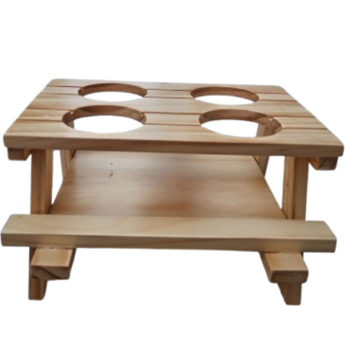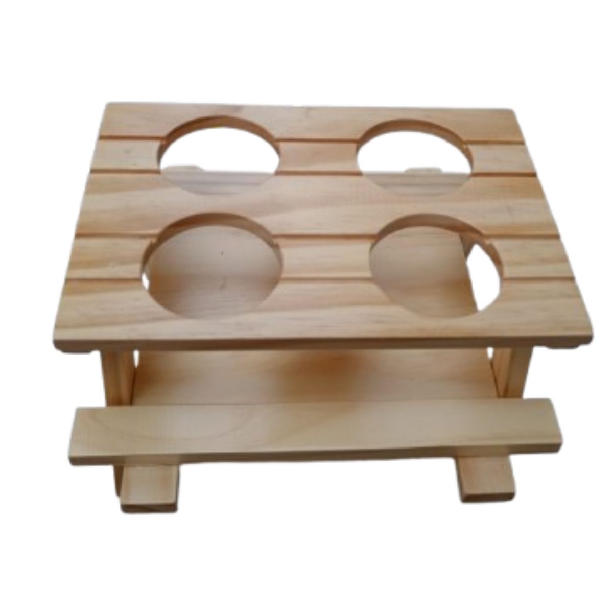 Mantén tus salsas organizadas y al alcance de la mano con este porta envases de madera, un accesorio ideal para mesas de restaurantes, parrilladas, food trucks o el hogar. Diseñado con cuatro agujeros redondos de 5 cm de diámetro, es perfecto para colocar botellas de salsa, condimentos o especias de forma segura y ordenada.