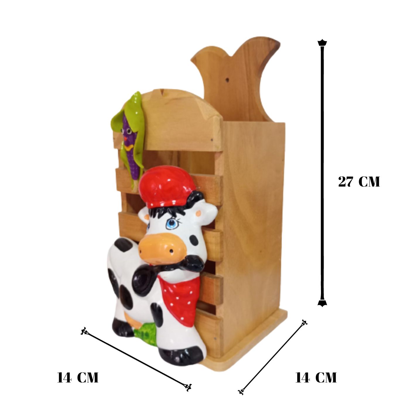 - Diseño Funcional: El diseño inteligente de este portacucharon te permite mantener tus utensilios de cocina organizados y al alcance de la mano mientras cocinas. La vaquita en porcelana actúa como un soporte seguro para tus cucharas, tenedores y cuchillos, evitando que ensucien la encimera.