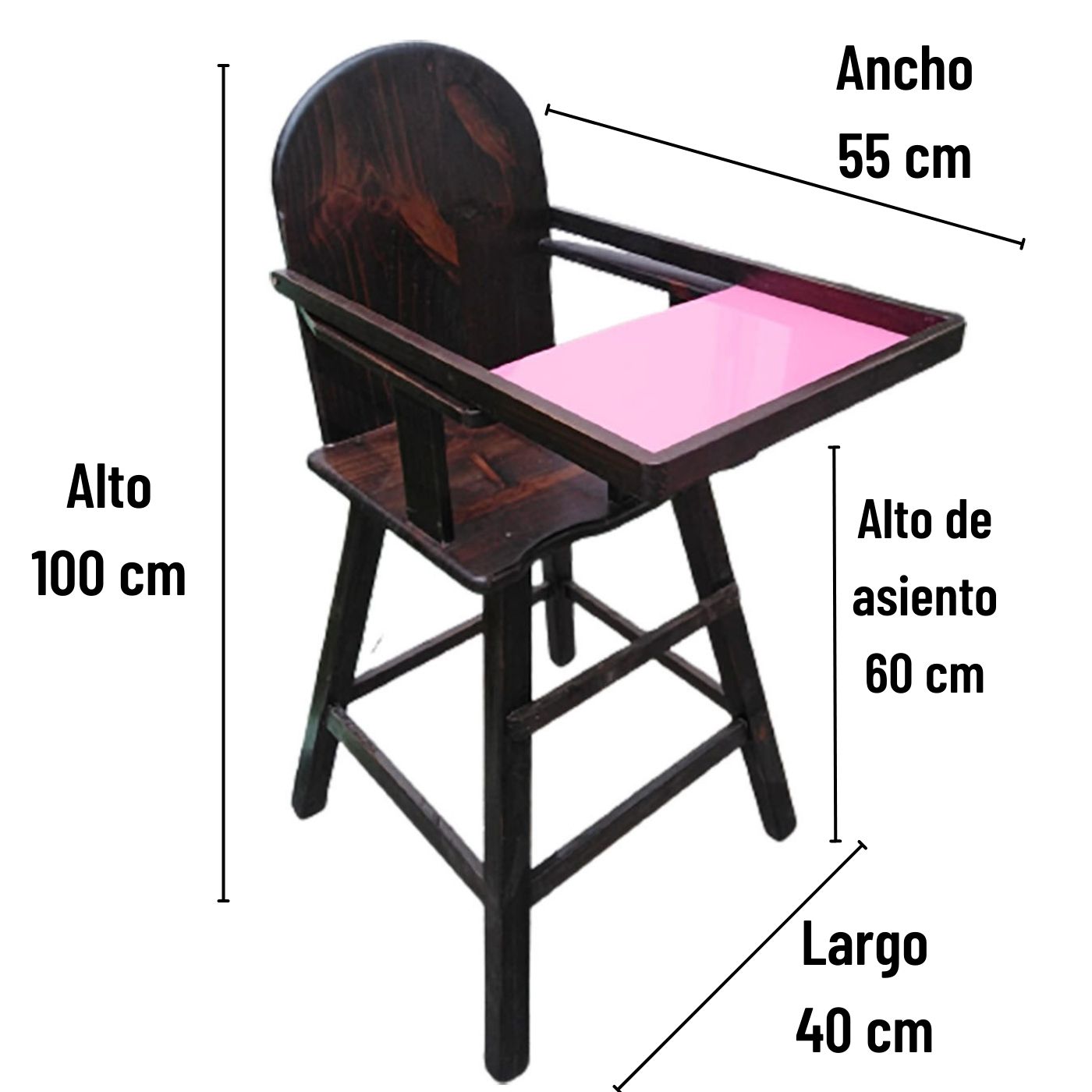 La silla de bebé para comer en madera de posición fija es un clásico accesorio para bebés que proporciona comodidad y seguridad mientras el bebé se alimenta. Esta silla está hecha de madera sólida, lo que le da una apariencia elegante y duradera que combina bien con cualquier decoración.