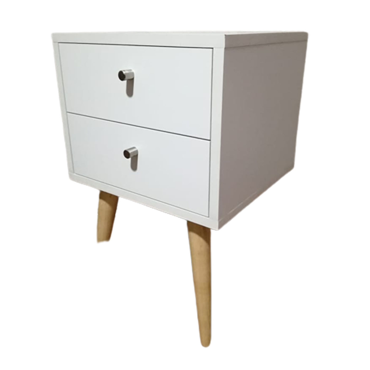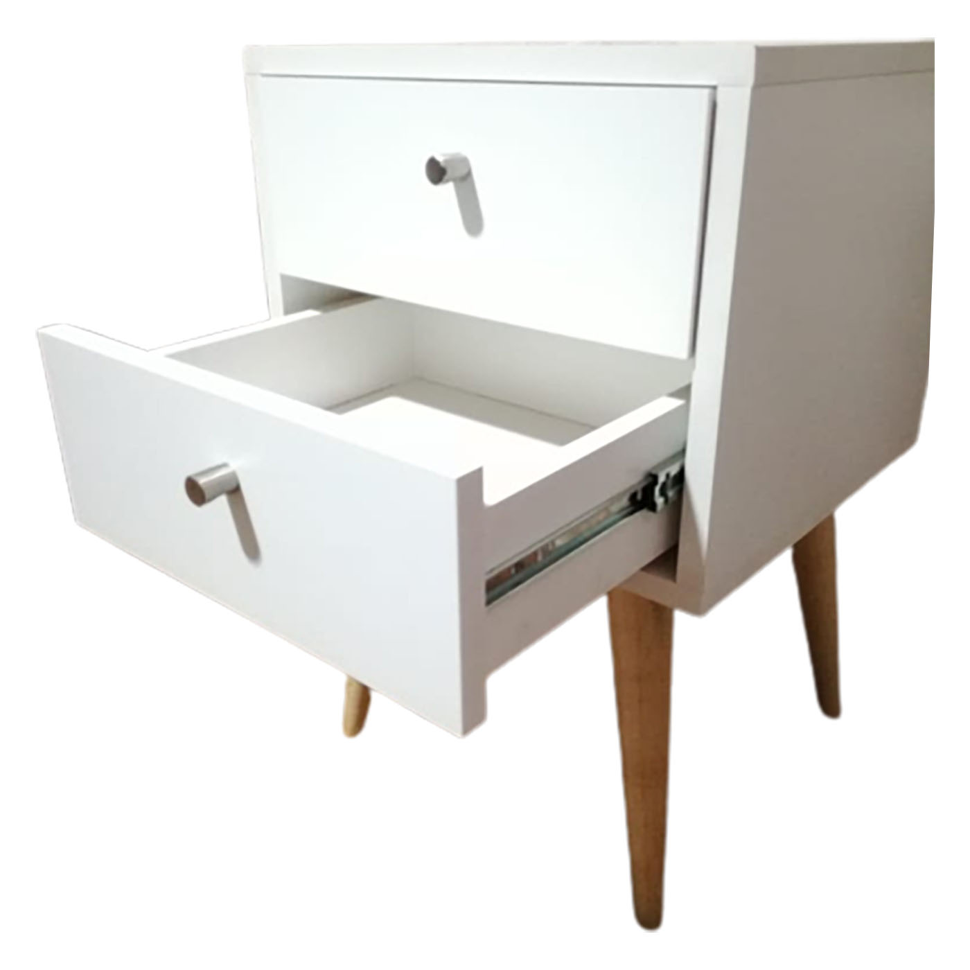 Velador Vintage Mesa De Noche Pizcagua En Madera Con Cajones en blanco